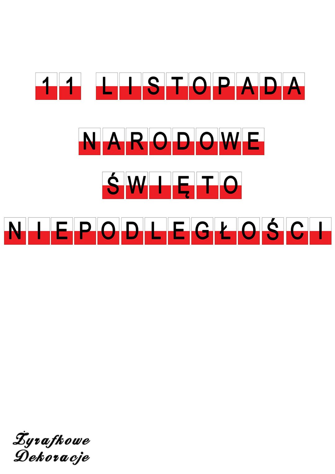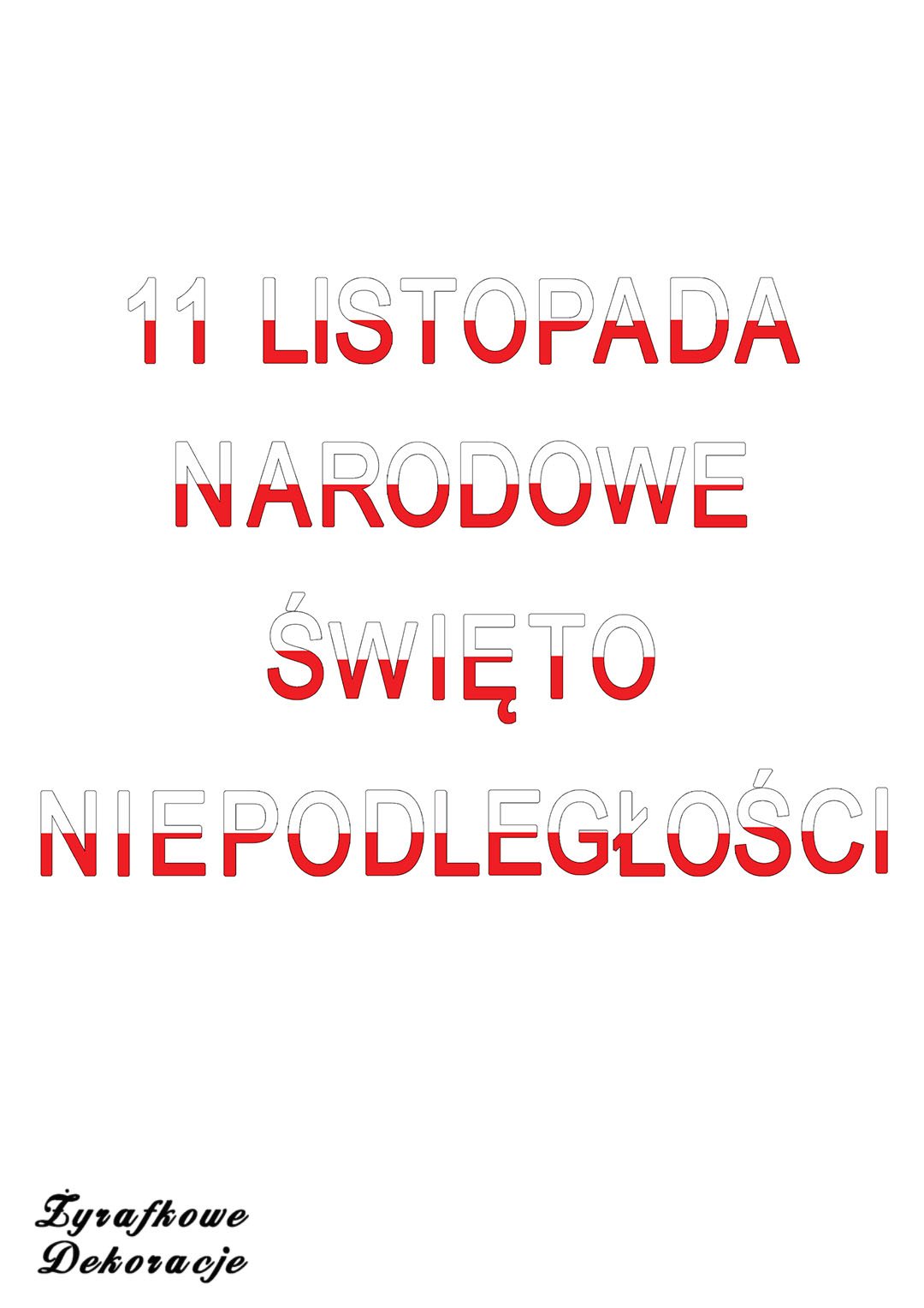 11 Listopada Narodowe Święto Niepodległości – napis – plik PDF z napisami do samodzielnego wydruku.