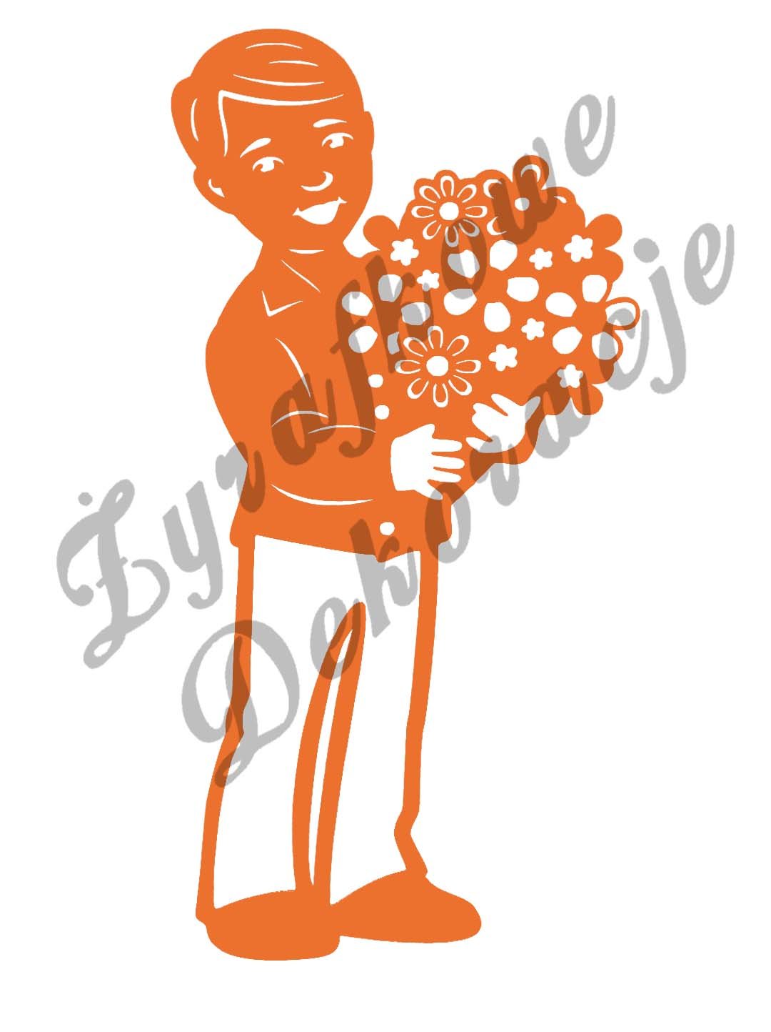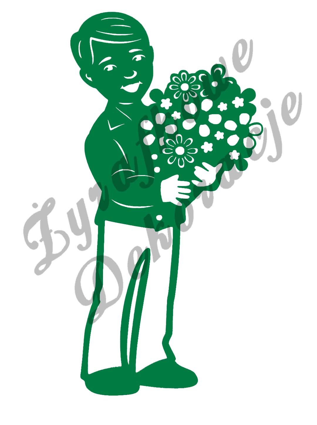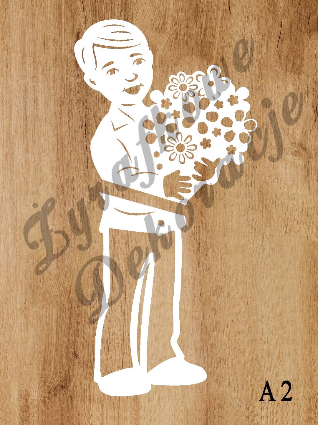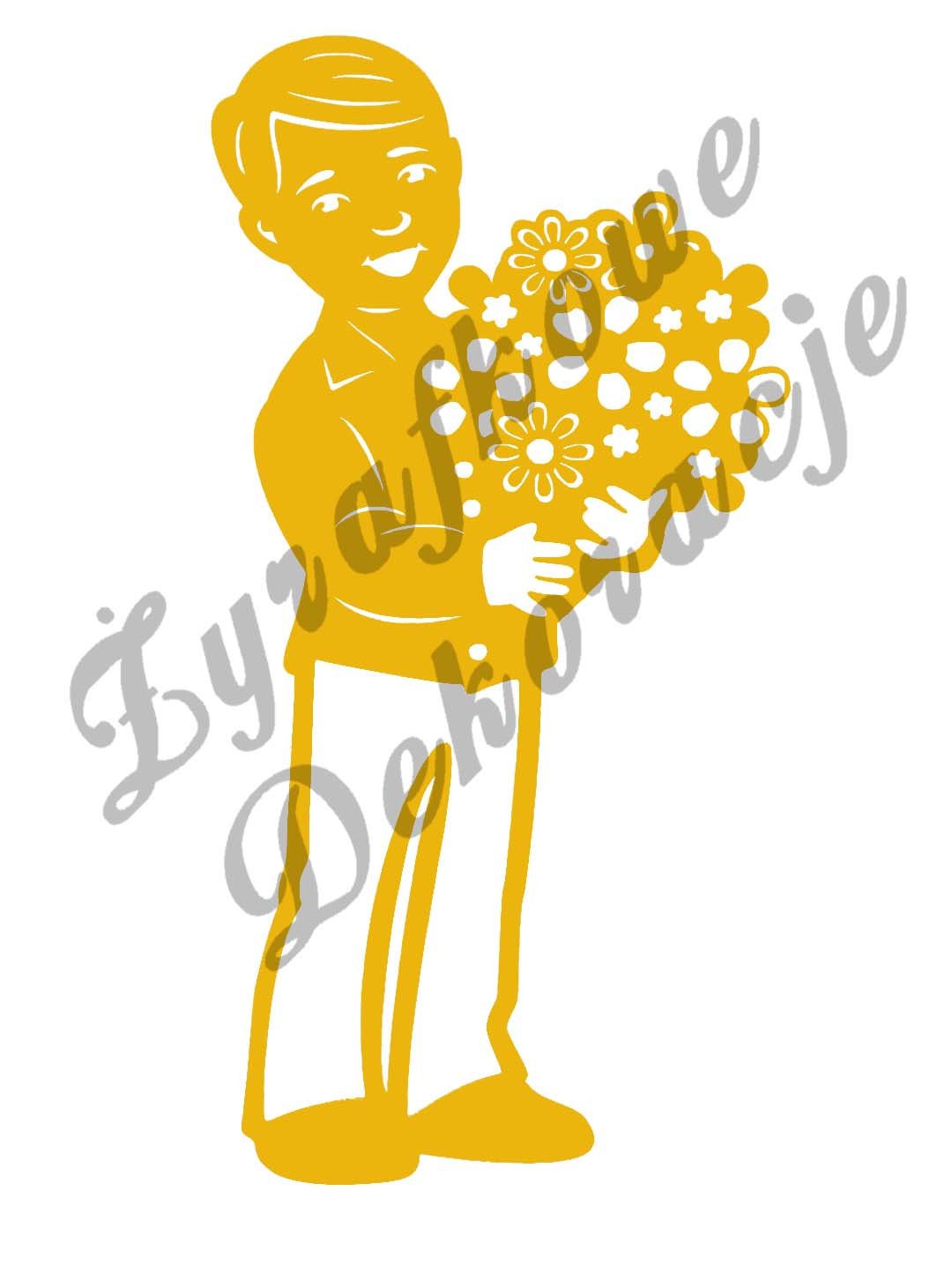 Chłopiec z bukietem kwiatów – witraż ażurowy