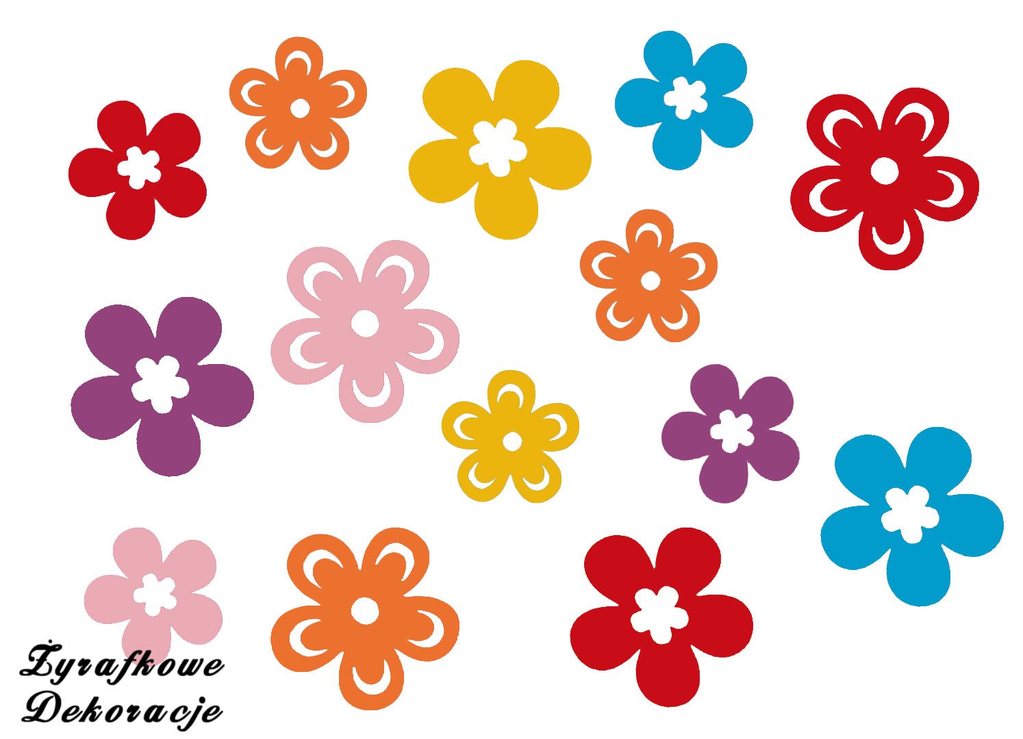 Zestaw składa się z 35 sztuk kwiatów w wymiarach 6-8cm w dwóch wzorach widocznych na zdjęciu. Kwiaty w zestawie są w różnych kolorach tzw. mix. Kolory są wybierane losowo do zestawu.