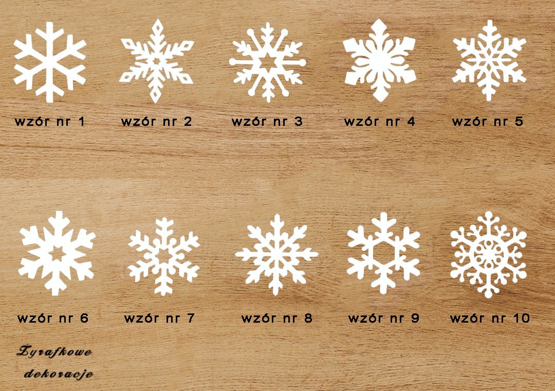 Zestaw składa się z 20 sztuk śnieżynek w wymiarach 10-12cm. Zakupiony zestaw może składać się z jednego wzoru lub większej liczby wzorów śnieżynek.