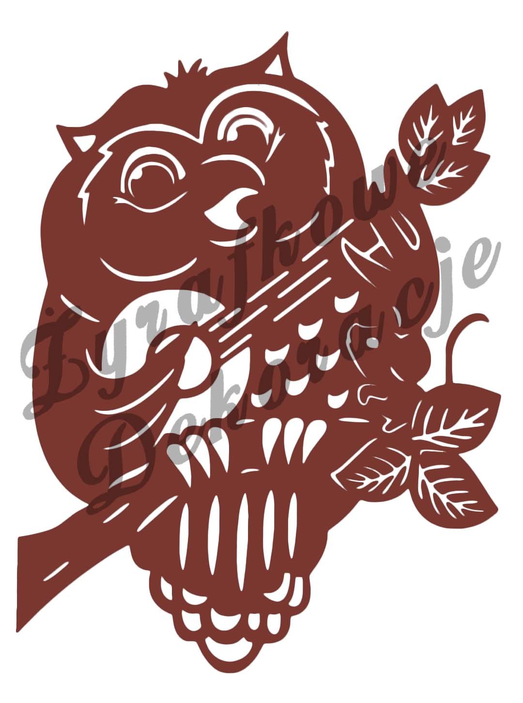 Sowa z gitarą – witraż ażurowy