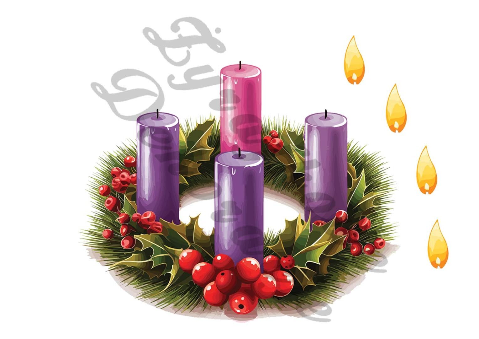 Dekoracja wieniec adwentowy ze świecami, które zapalane są co niedzielę, zgodnie z tradycją. Płomienie oraz wieniec zaprojektowane są oddzielnie tak by umożliwić dzieciom, nauczycielom przyczepienie jednego płomienia tygodniowo. W ten sposób wspólnie odliczamy tygodnie do Bożego Narodzenia.